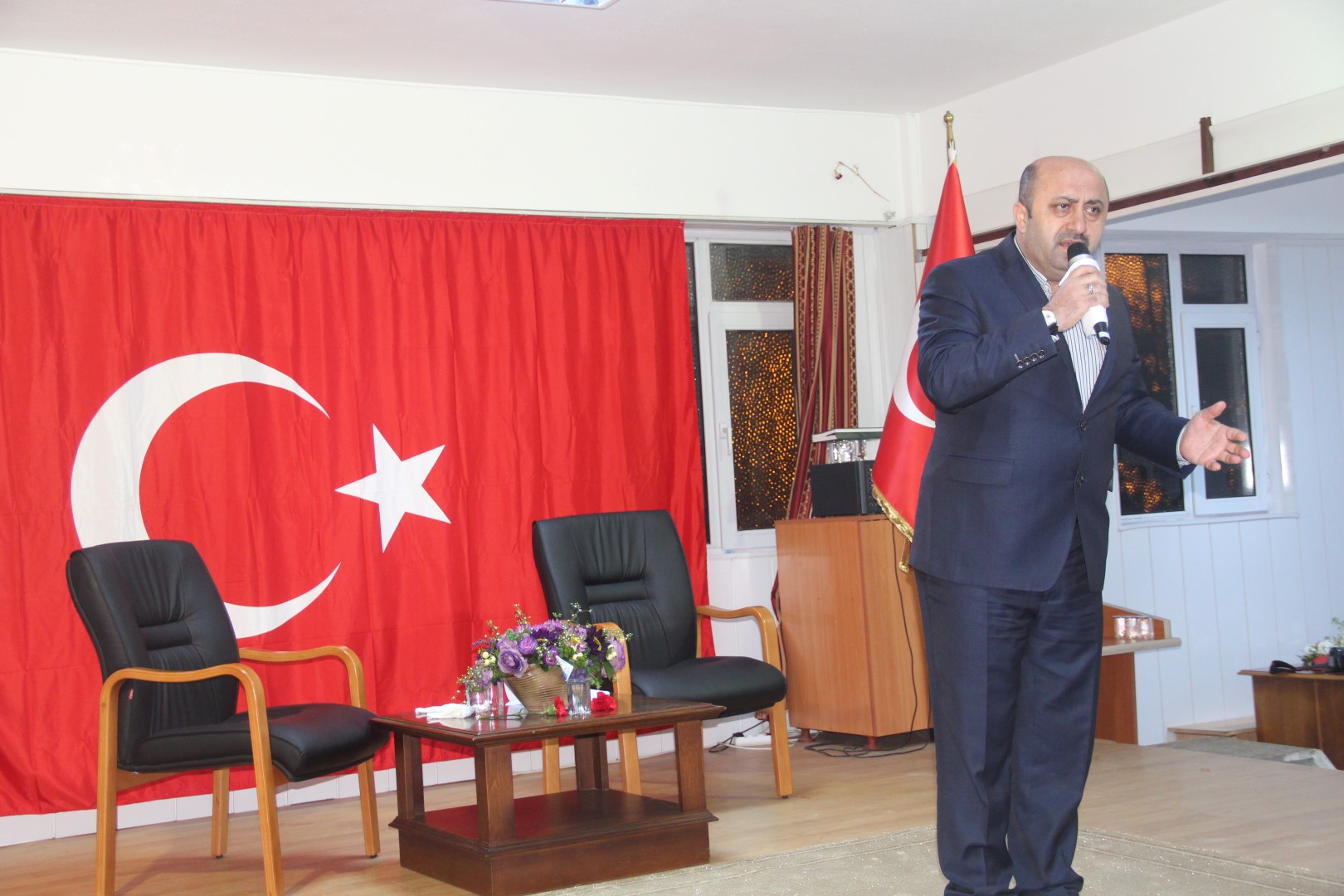 Programın sonunda Ferizli Belediye Başkanı Ahmet Soğuk günün anlam ve önemine binaen İlahiyatçı Yazar Ömer Döngeloğlu’na çiçek takdim etti.