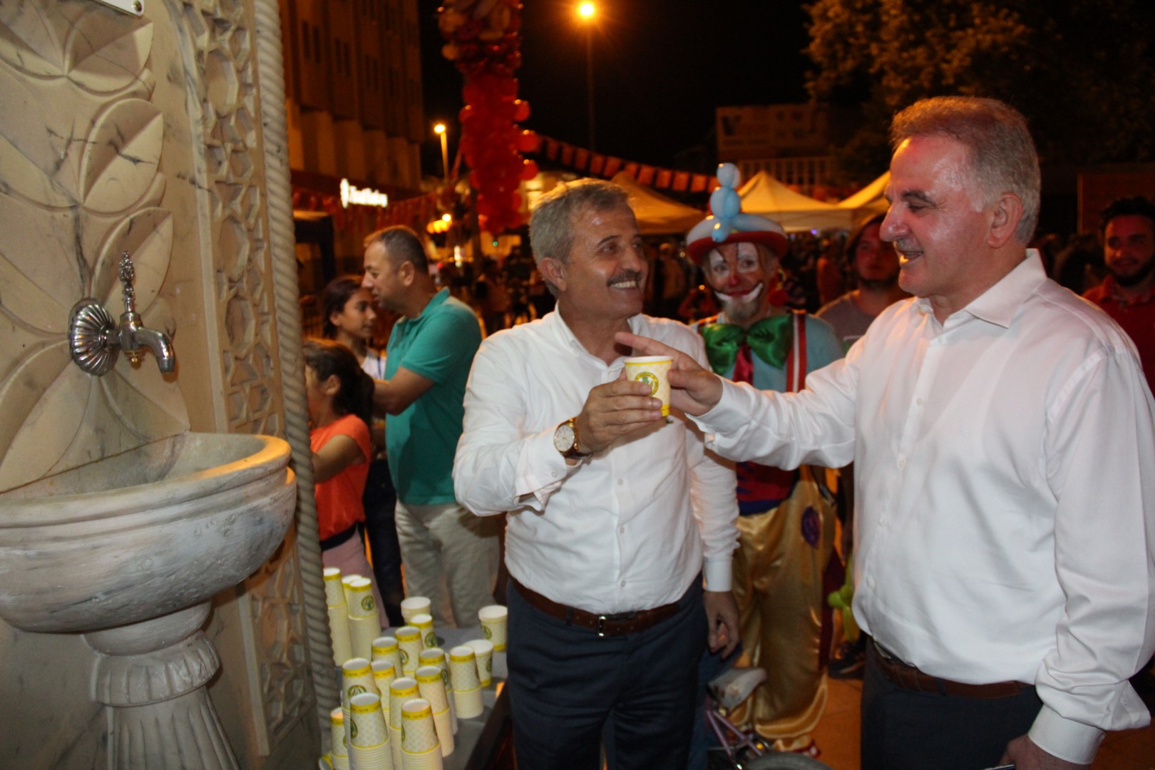 Belediye Başkanı Ahmet Soğuk ’un vatandaşlara limonata ikramı esnasın da, Sakarya Ün. Rektörü Prof. Dr. Muzaffer Elmas’ta çeşmeyi ziyaret etti. Soğuk ve Elmas bir süre sohbet ettikten sonra Başkan Soğuk, Elmas’a çeşmeden limonata ikram etti.